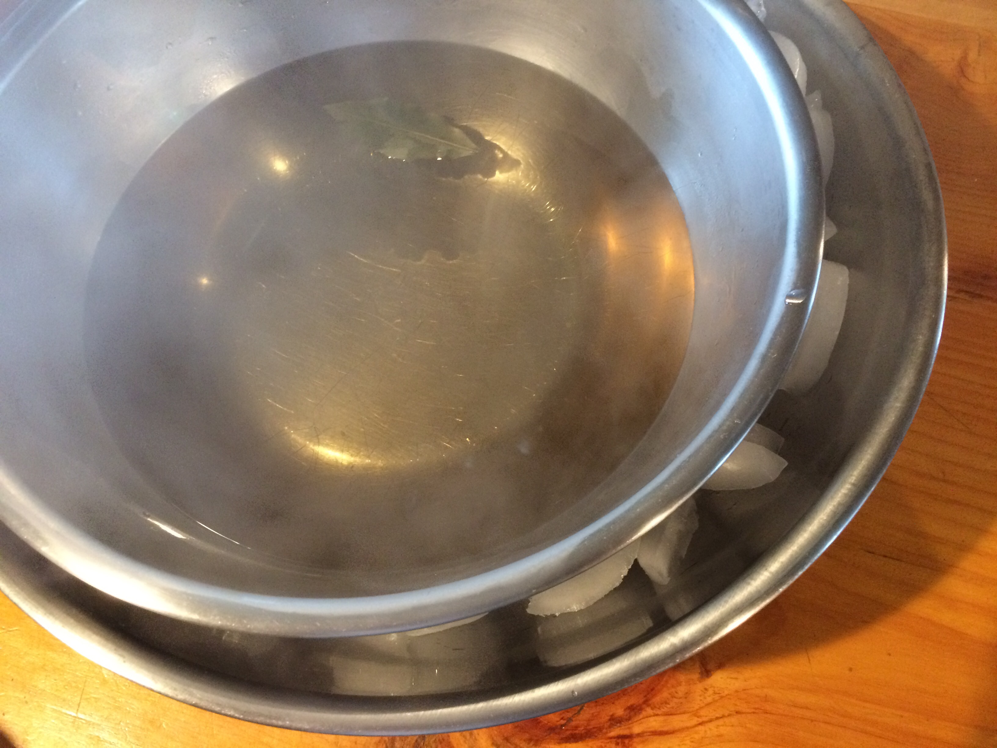 The quickest method I have found for cooling the brine is in an ice bath. Fill a large bowl or other container halfway with ice and place a slightly smaller bowl or container on the ice, pushing it down so the ice comes up around the sides. Pour hot brine into the smaller bowl and leave to cool. The brine should be chilled in about 30 minutes.
