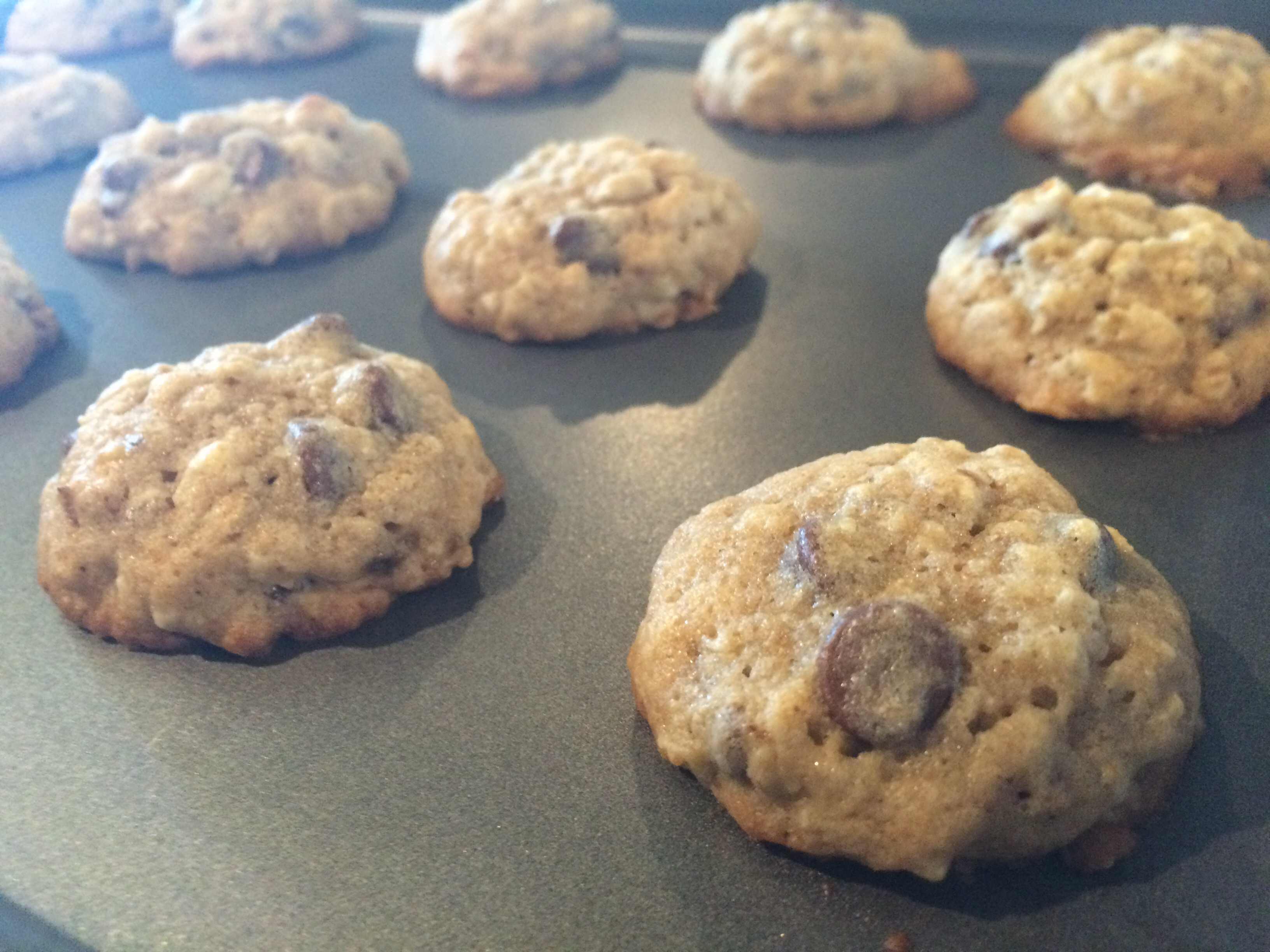 I am always looking for new cookie recipes to try, especially ones that sneak in some healthy stuff but are still delicious. This week, I tried a recipe from Martha Stewart that blew me away. These cookies are phenomenal. Imagine you combined a banana bread with an oatmeal chocolate chip cookie. The banana flavor is not too strong, the old-fashioned oats and walnuts give them a nice crunch and who doesn’t love chocolate? I really liked these cookies. I know you will too!