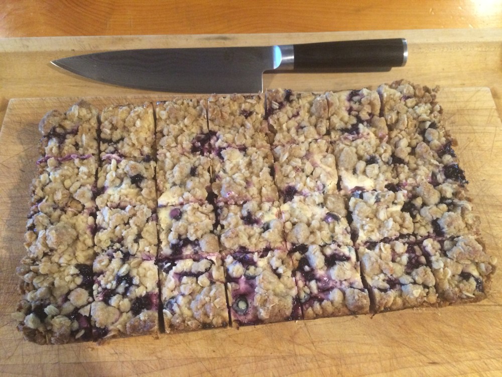 This week I decided to try a recipe for Blueberry Lemon Bars from one of my favorite books, The Bakers Manual. It is full of dependable, basic recipes that are great to use as a springboard for creative substitutions and changes. I think it is a good idea to try a recipe the way it is written the first time so the alterations can be informed ones. After that, the sky is the limit!