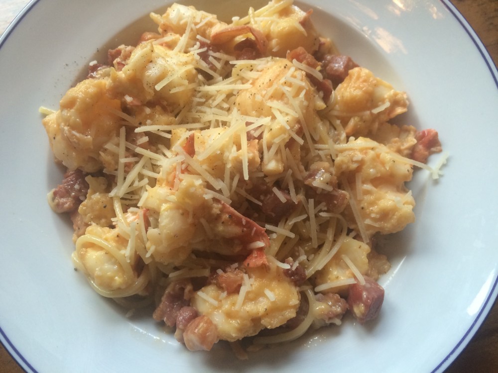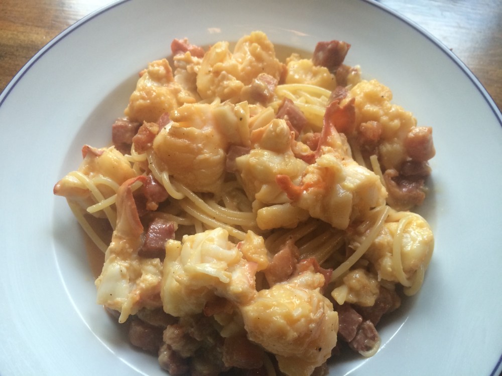 Today I wanted to do something special for the other staff here on the island. We had some lobster left over from the last dinner so I decided to make everybody a nice, hearty lunch.