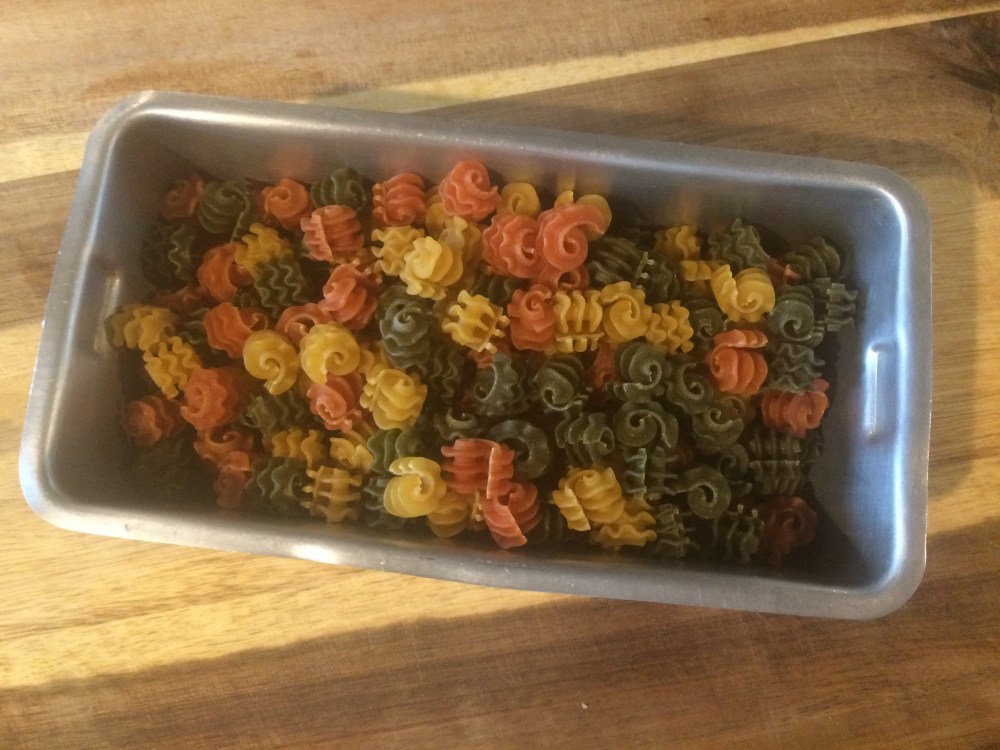 Elbow macaroni is a traditional choice but I didn’t have any so I used these garden ruffles instead.