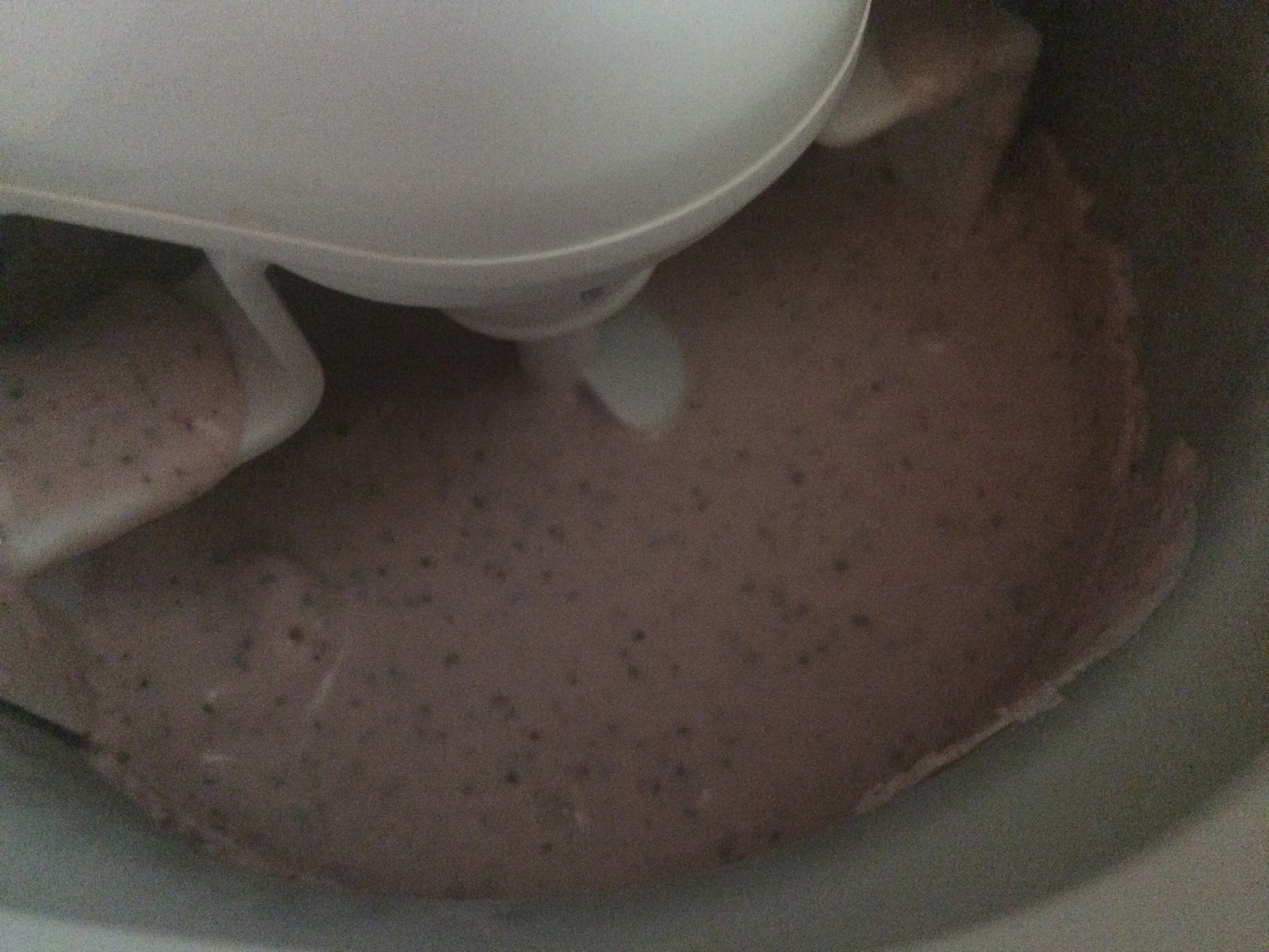 I made some quick calculations for an ice cream base recipe that would allow me to use the cream I found as well as some leftover milk and sour cream. Then, I headed to the cabinet for my immersion blender. I added the milk and the sour cream to the slightly cooled berries and gave the mixture a quick stir before tossing in the mint leaves and letting the blender rip. I stirred in the heavy cream and transferred the finished strawberry mint cream to a sealed container to chill in the fridge overnight.