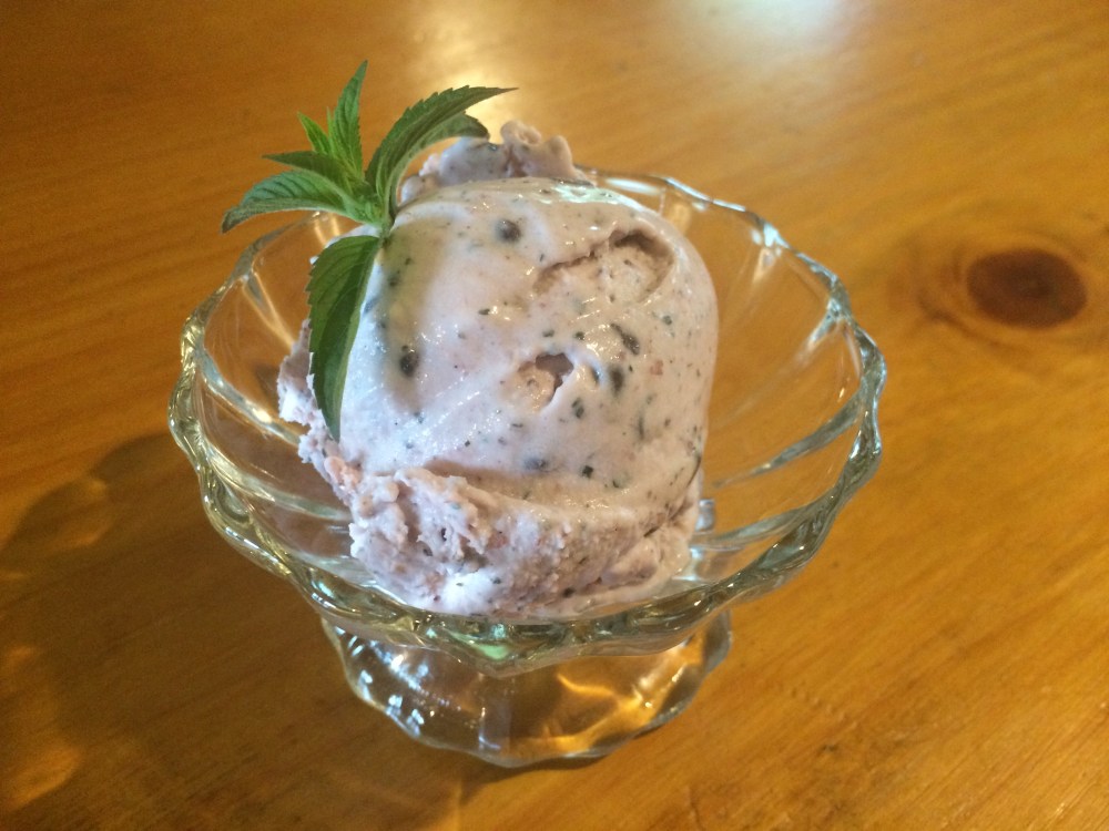 Roasted Strawberry and Wild Mint Chocolate Chip Ice Cream